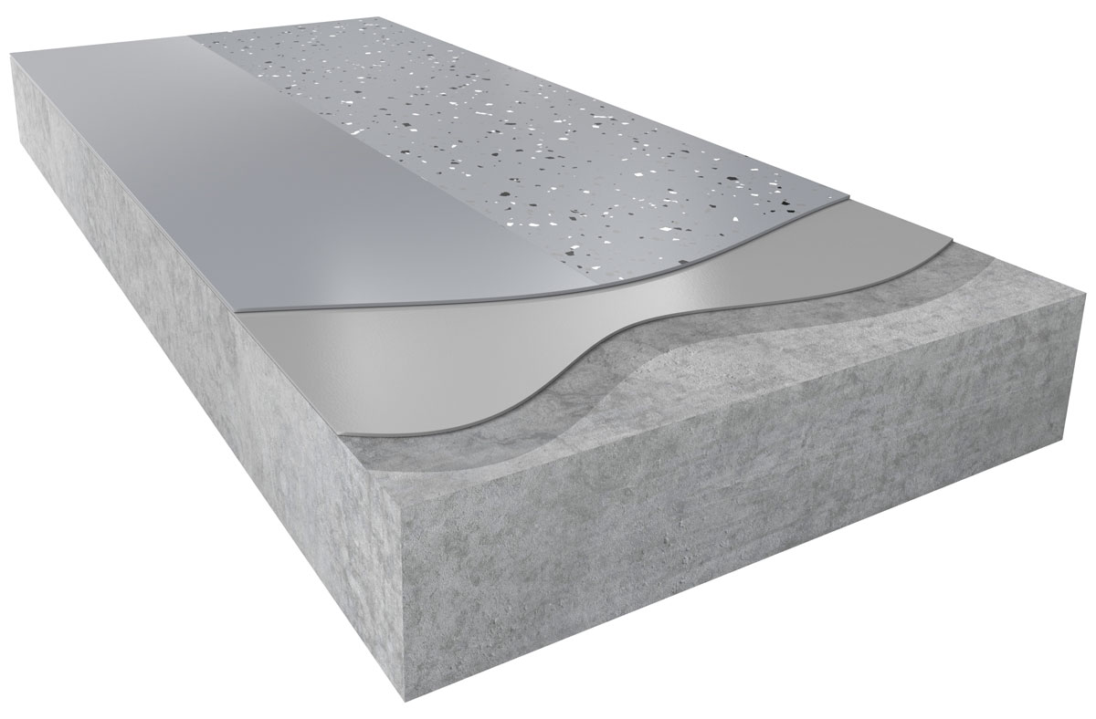 Der Beschichtungsaufbau mit 2K-Sealcon Top 832 ermöglicht eine schnelle und praxisgerechte Flächenabdichtung für Balkone, Loggien und Laubengänge in geringer Schichtstärke von 2 mm. Besonders rationell: Die Beschichtung bietet gleichzeitig Abdichtung und Nutzschicht. Optional kann die Oberfläche durch Dekochips 843 individuell gestaltet werden.